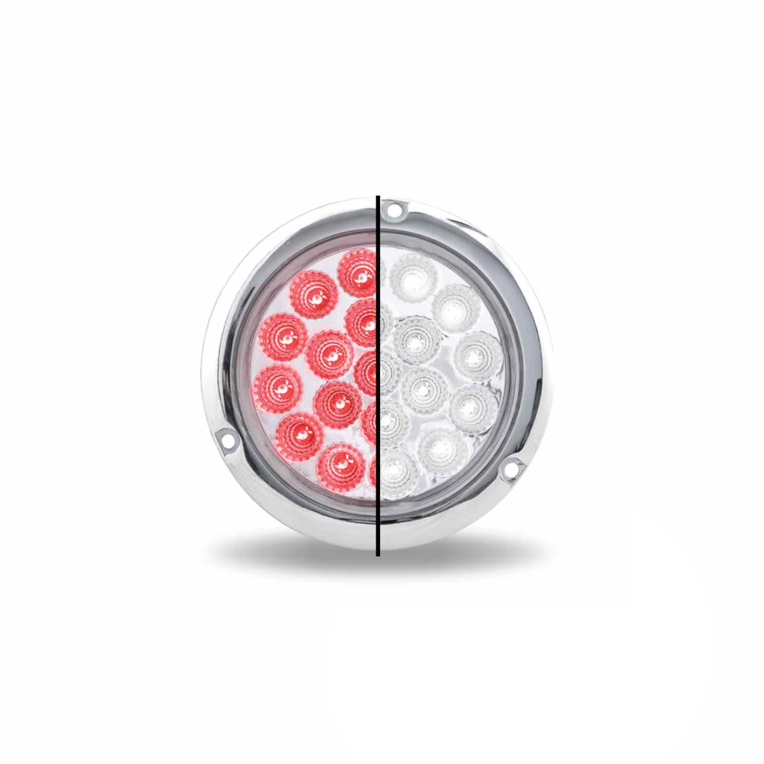 4″ Red Stop, Turn & Tail to White Back Up Round Flange Mount LED Light