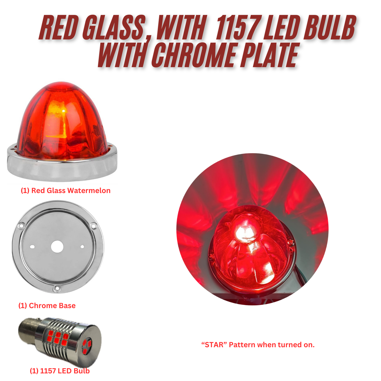 RED Lens Glass Watermelon with 1157 LED Bulb