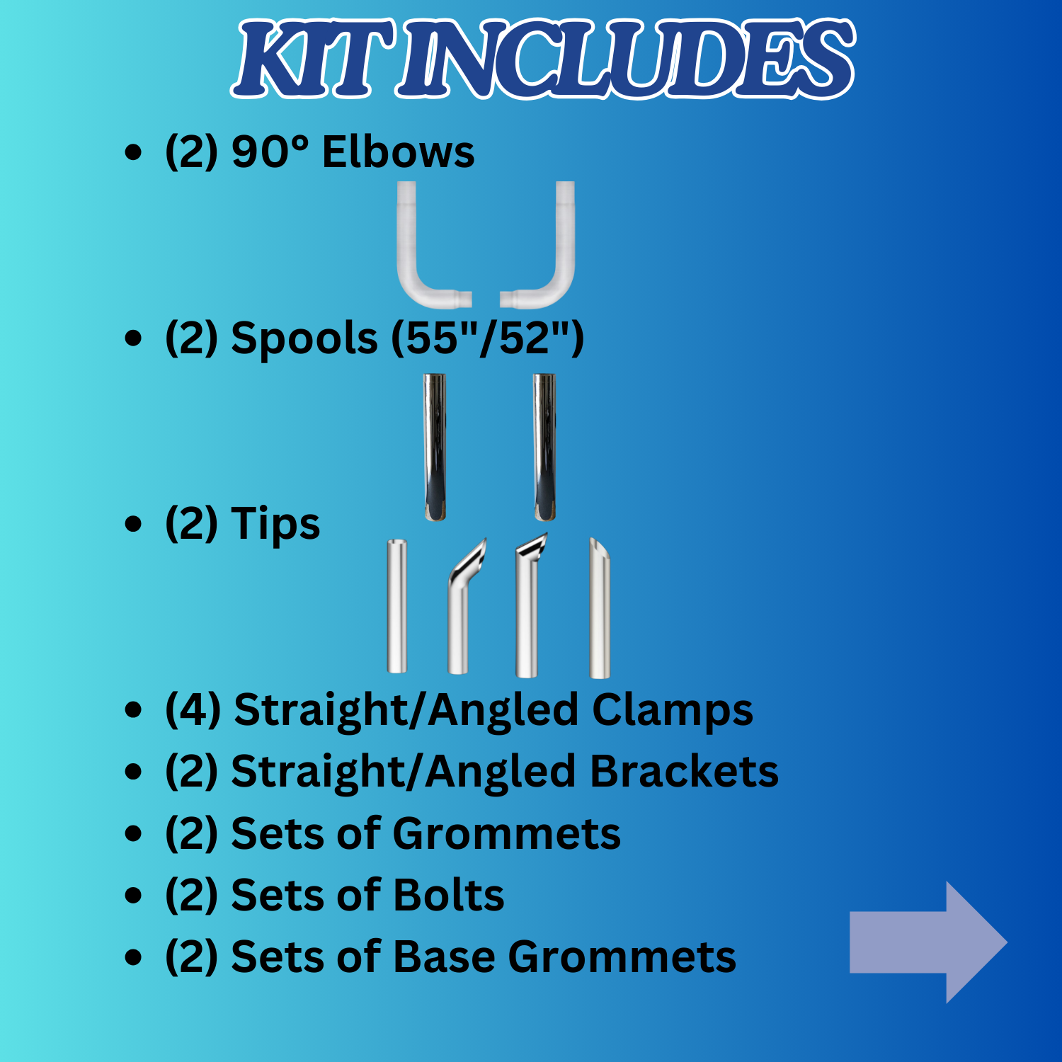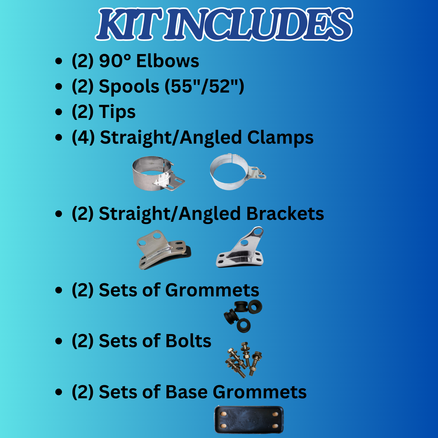 Exhaust Kit for Peterbilt models with 90 degree style elbows.