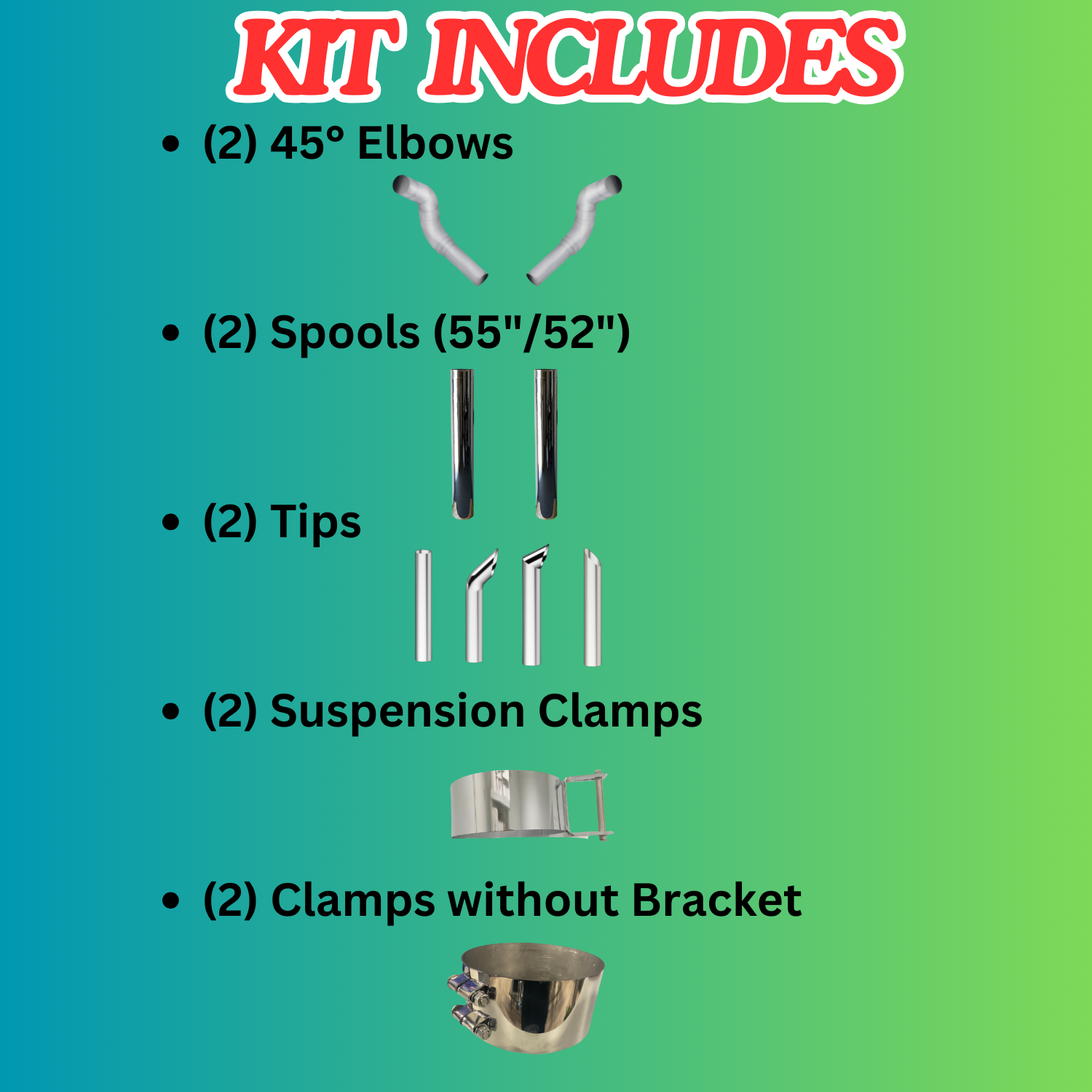 Exhaust Kit for Kenworth Models with 45 degree style elbows.