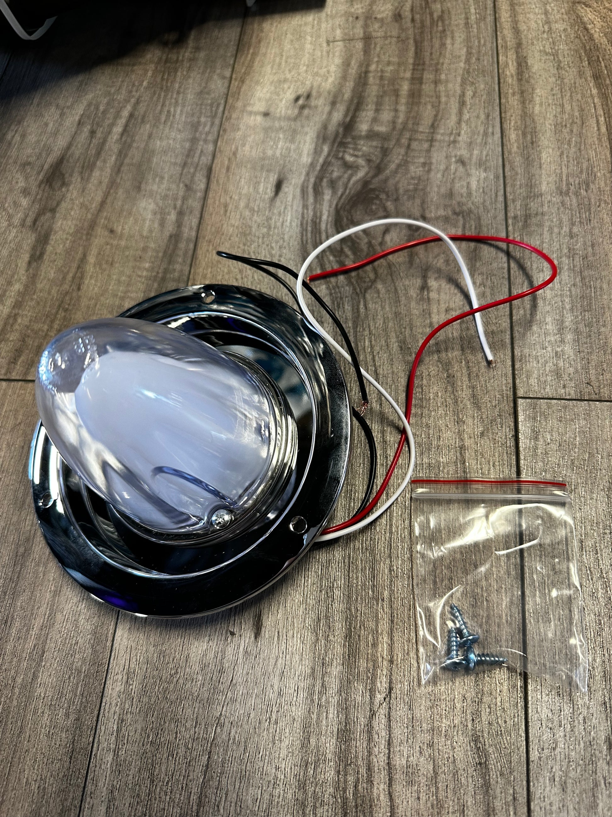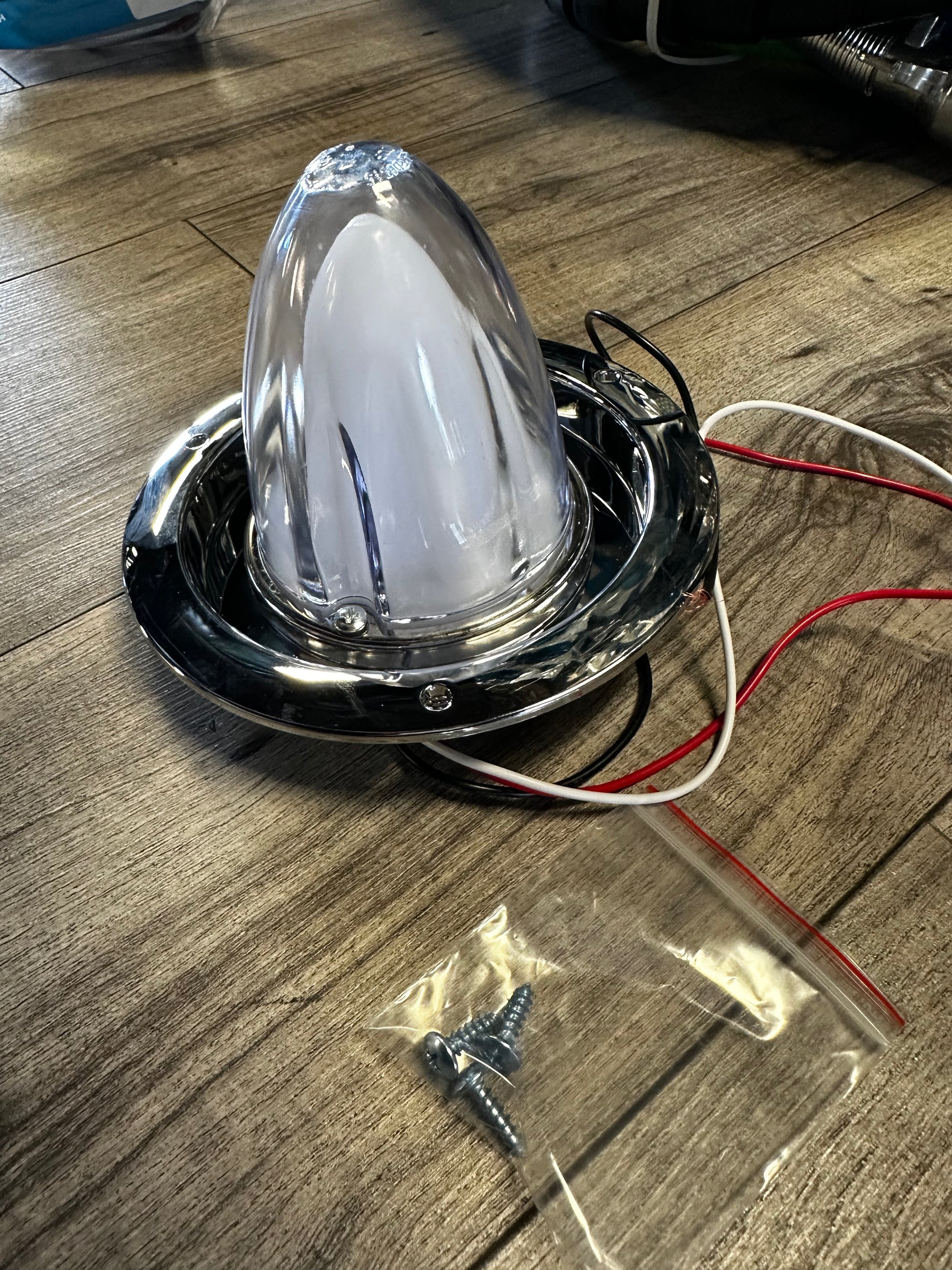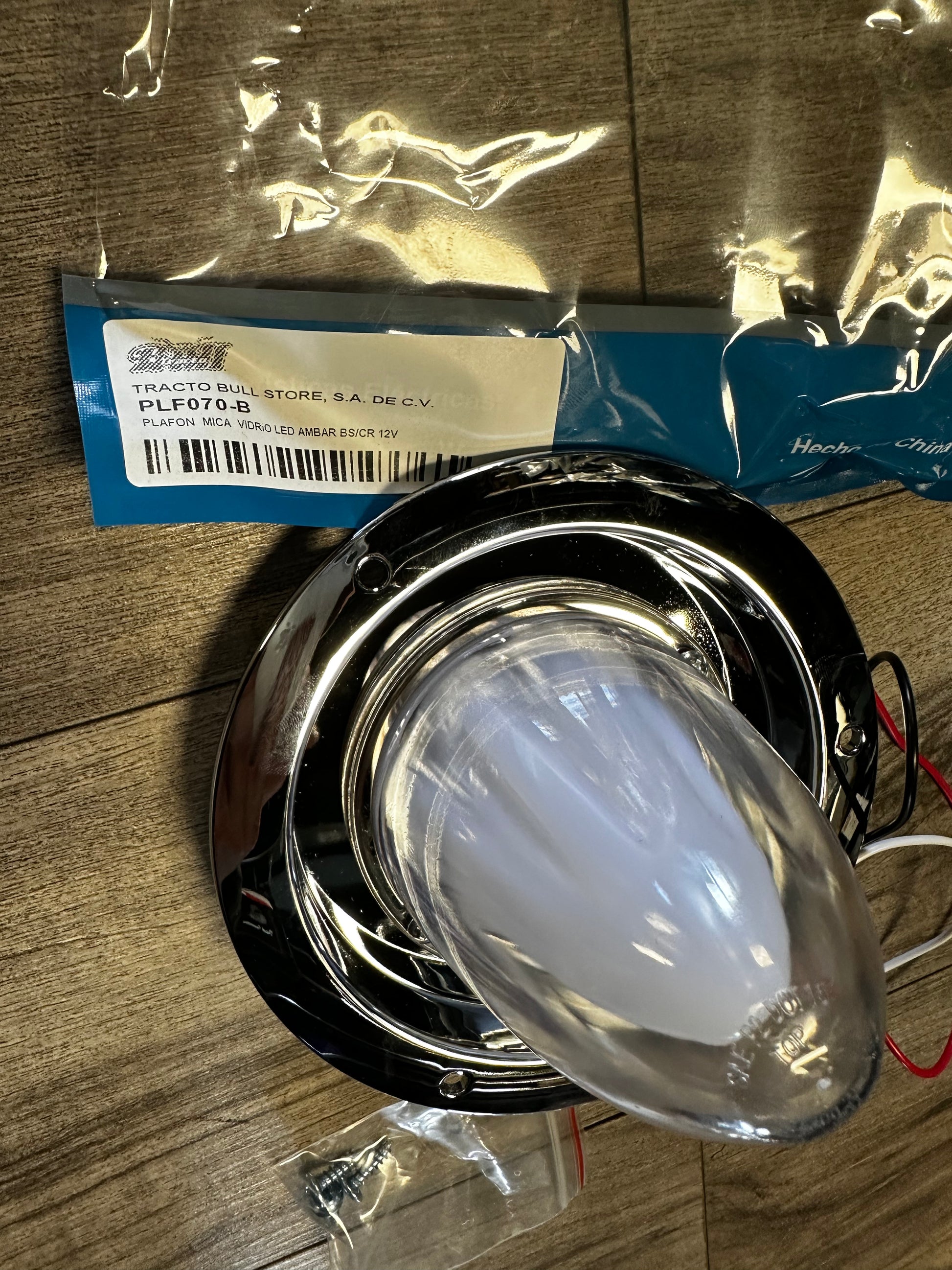 PLASTIC WATERMELON LENS,CLEAR LENS ,AMBER LED WITH CHROME BASE 12V