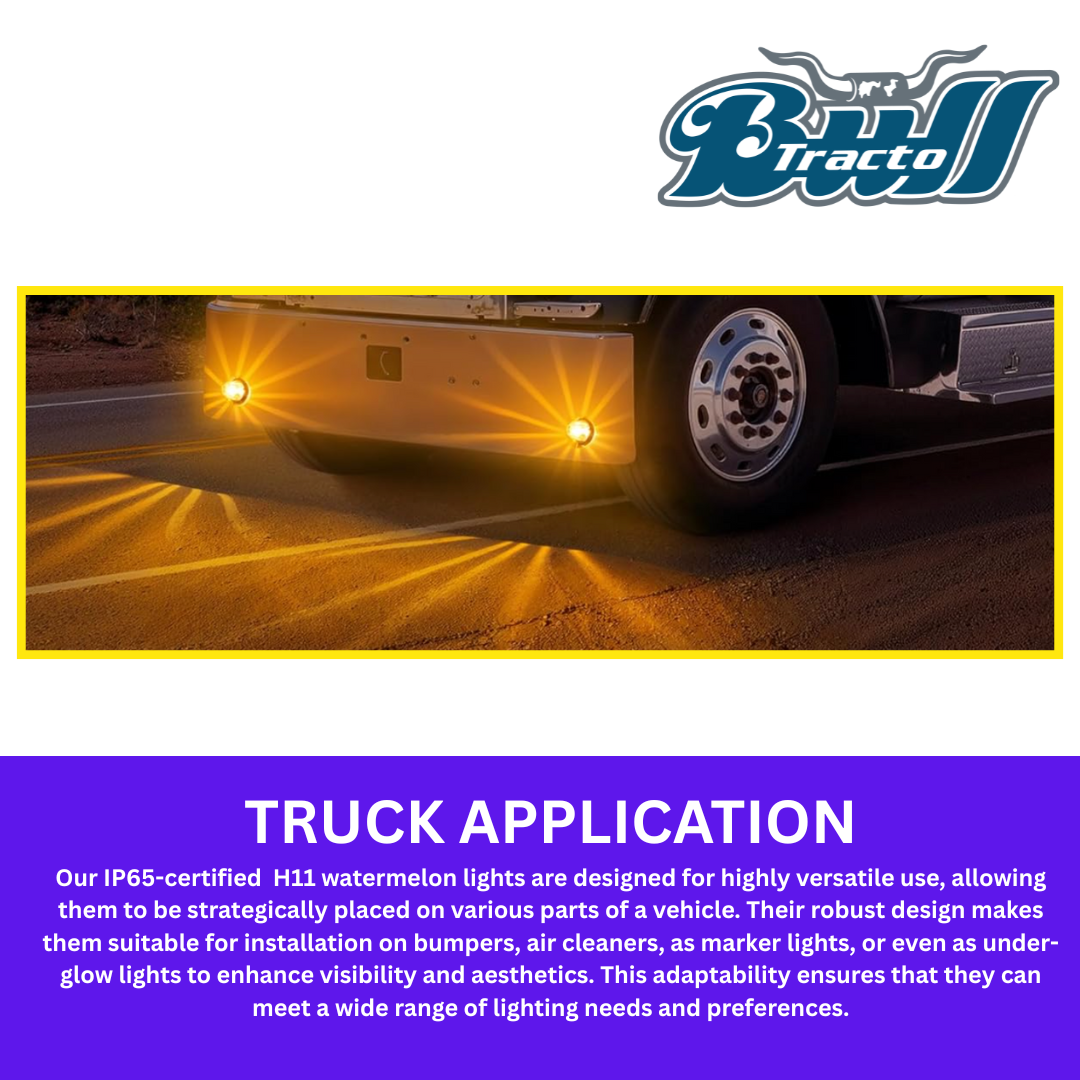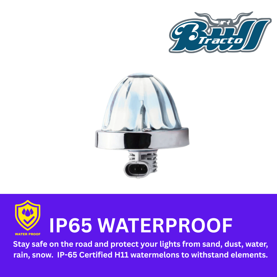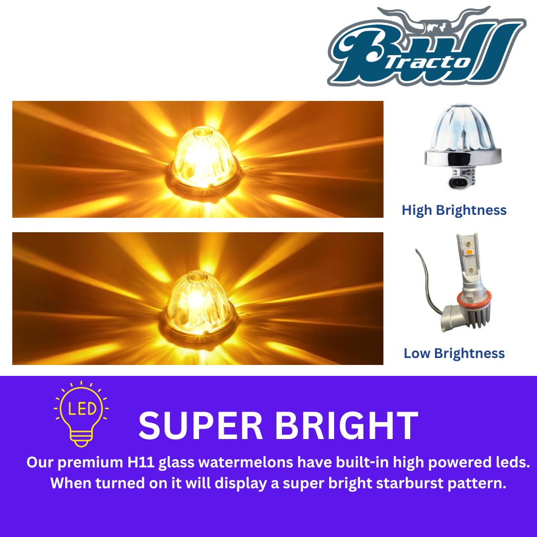 Glass Watermelon white lens,H11 LED bulb Amber,Single color,base metal chrome