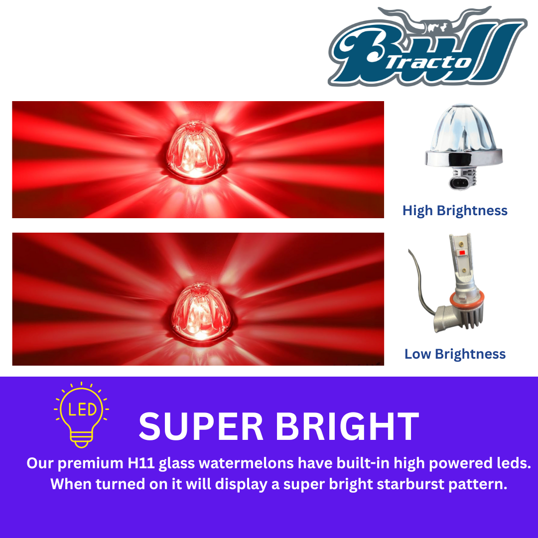 Glass Watermelon white lens, H11 LED bulb Red ,Single color,base metal chrome