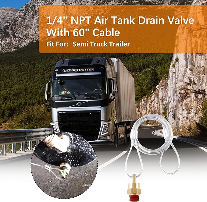 - High Performance: Semi truck air tank valve with 60" cable can effectively prevent harmful condensation and pollutants from building up in the system