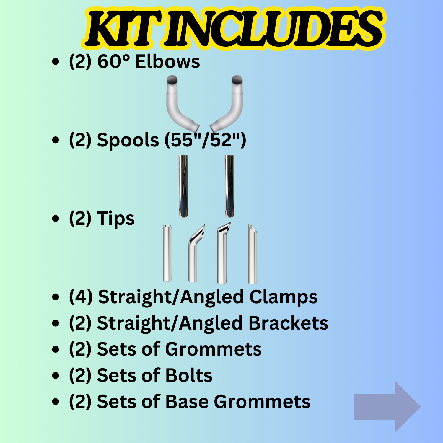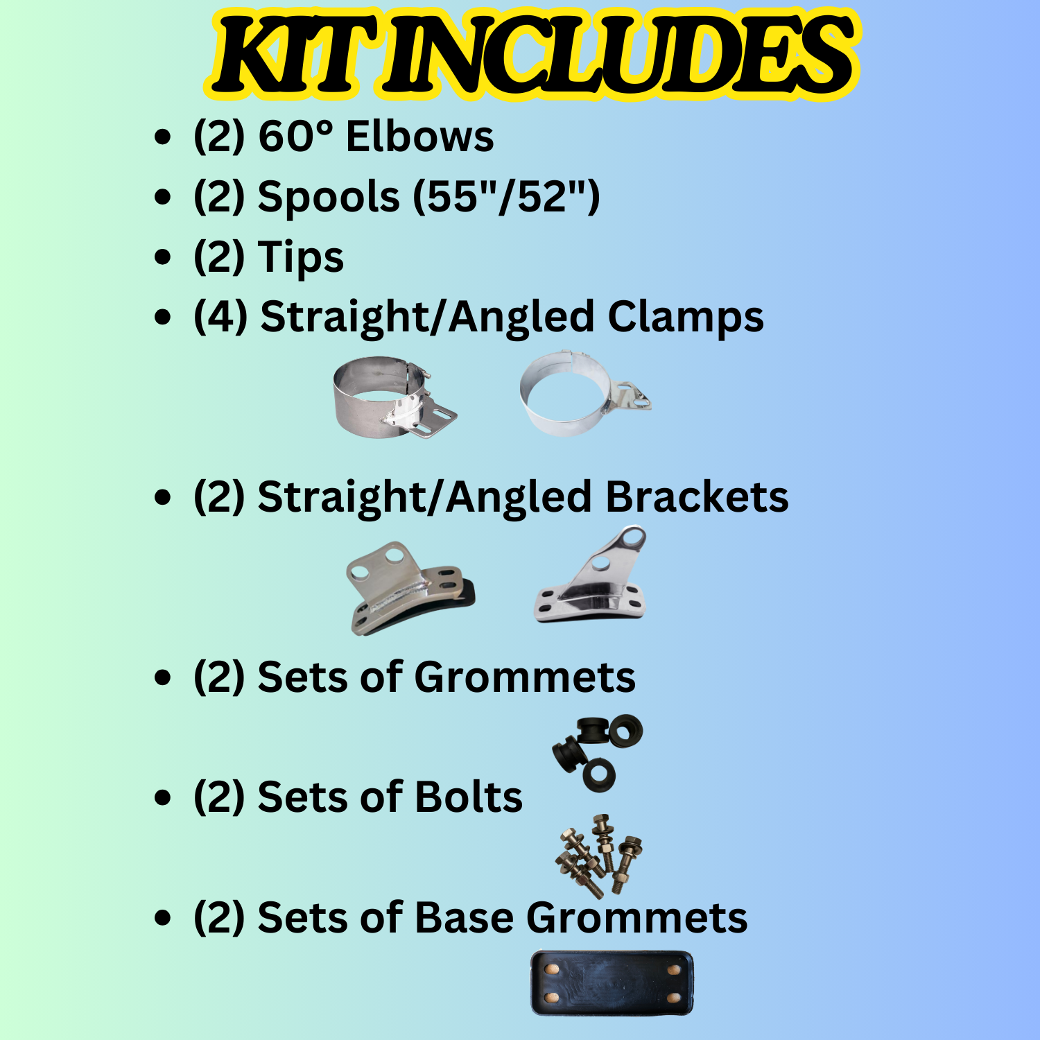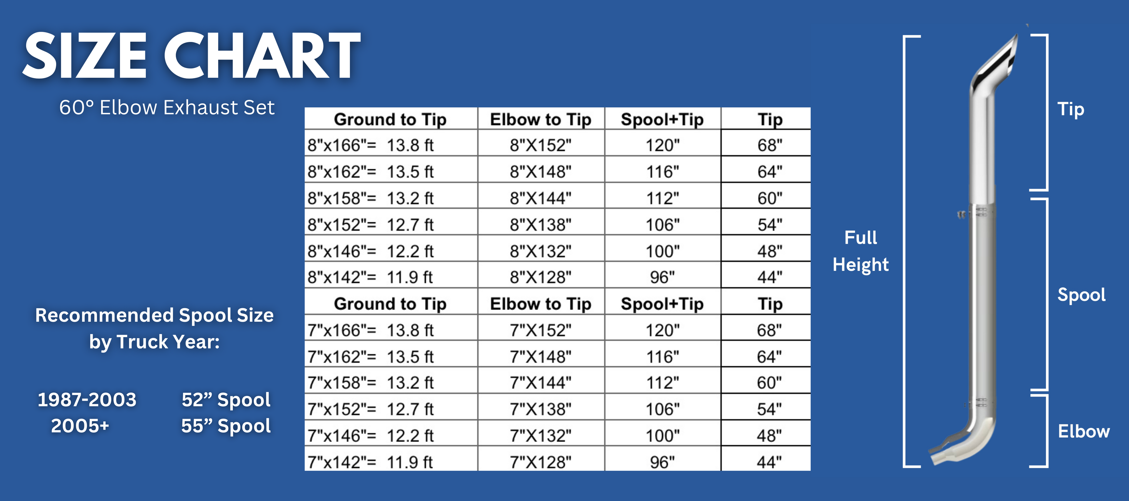 Exhaust Kit for Peterbilt models with 60 degree style elbows.