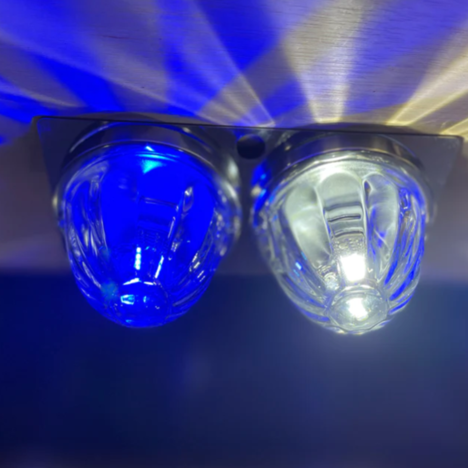 Stainless Dome Light Plate Above Door With Holes For 2 Watermelon Lights For Peterbilt & Kenworth